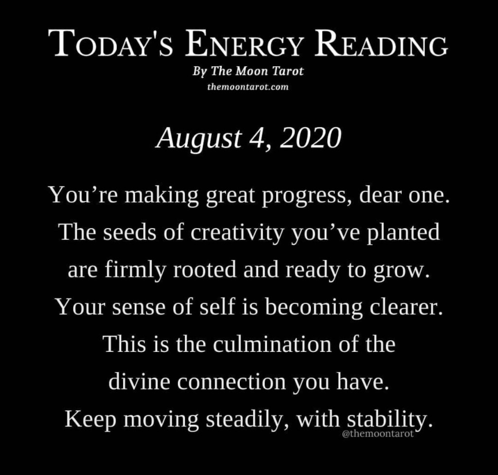 Full Moon Energy August 4, 2020 / royalgamutart Today Moon Energy Reading August 4, 2020Keep moving steadily, with stability. Share this: Click to share on X (Opens in new window) X Click to share on Facebook (Opens in new window) Facebook Like Loading...
