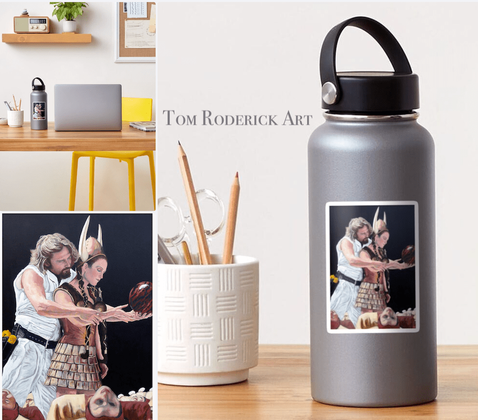 I Just Dropped In sticker by Boulder portrait artist Tom Roderick.
