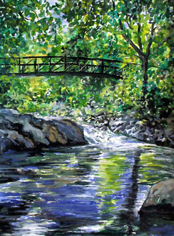 Watercolor painting of Boulder Creek by Tom Roderick.