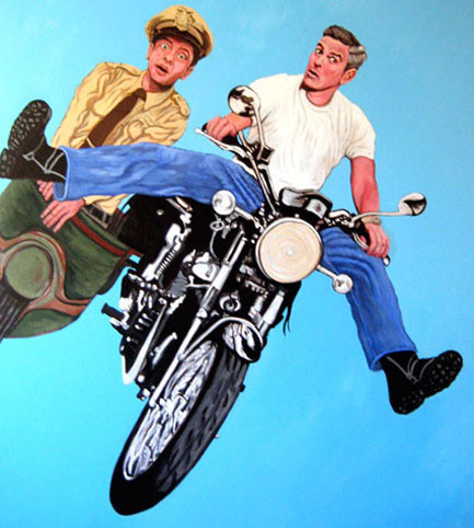 Blink Portrait of George Clooney and Don Knotts riding a motorcycle by portrait artist Tom Roderick of Boulder, Colorado. Like Loading...